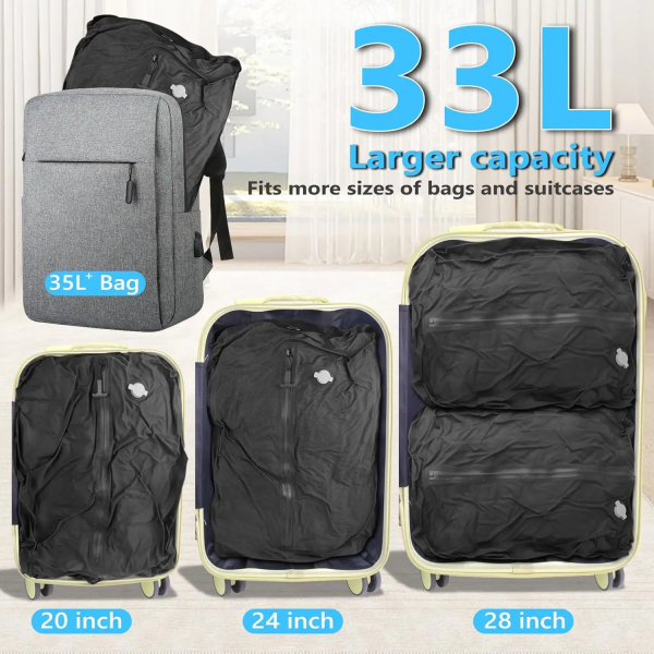 - [Large Capacity]The size of our vacuum travel compression bag is 55*40*15cm (21.7*15.8*5.9in), our bags are larger in size and have more capacity than the same type of bags on the market, and can hold up to 33L of laundry, fit into a suitcase or as a compression bag for backpacks over 35L. Perfect for 7-10 days of worry-free travel or business trips.